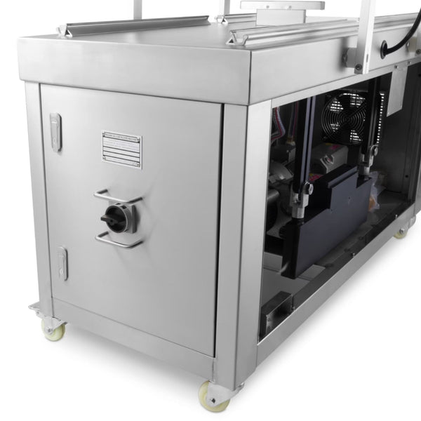 - Edelstahlgehäuse auf Rädern (278 kg)