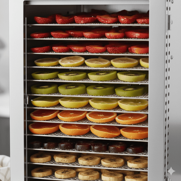 Dieser professionelle Dörrautomat aus Edelstahl trocknet Lebensmittel durch Einwirkung heißer, trockener Luft. Er kann zum Trocknen von Obst, Gemüse, Kräutern und anderen Lebensmitteln verwendet werden, indem deren Wassergehalt reduziert wird, wodurch ihre Haltbarkeit verlängert wird. Neben der Verlängerung der Haltbarkeit von Lebensmitteln können mit dem Dörrautomaten auch gesunde und leckere Snacks wie Gemüsechips, Fleisch oder Trockenfrüchte zubereitet werden. Der professionelle Dörrautomat aus Edelstahl ist BPA-frei, korrosionsbeständig und leicht zu reinigen. Seine 12 Metallschalen mit den Maßen 29 x 29 cm sind spülmaschinenfest.